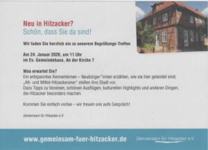 Der Verein „Gemeinsam für Hitzacker“ lädt ein zu einem Empfang, bei dem Neubürger*innen und „Alteingesessene“ Kontakte knüpfen und miteinander ins Gespräch kommen. Der Empfang findet statt am
